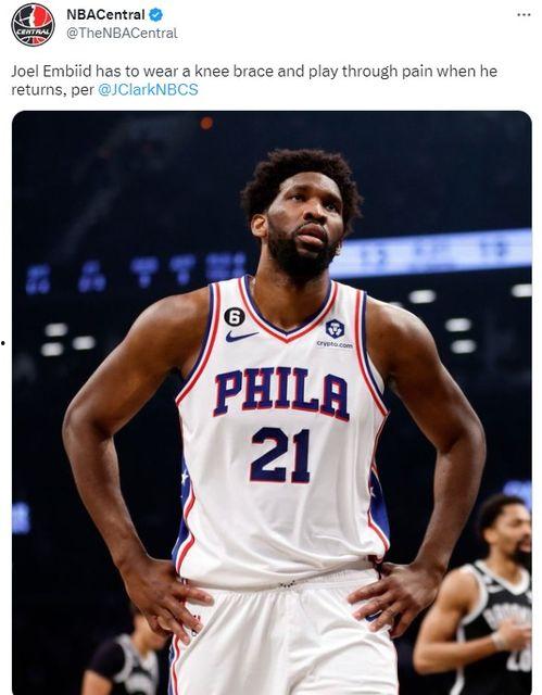 shams在社交媒体上写道:“根据我得到的消息,恩比德的脚踝韧带损伤并不严重,他有望在接下来的几周内恢复训练。不过,具体复出时间还需根据他的恢复情况而定。”